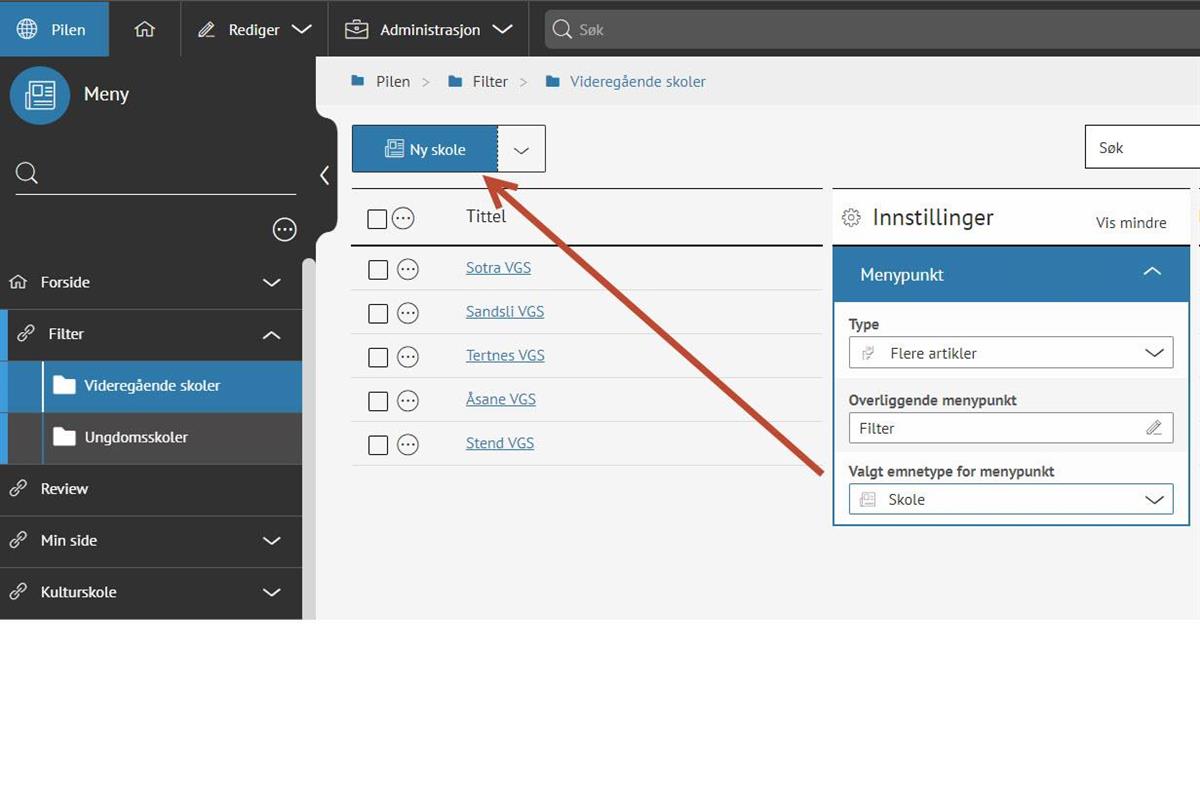 - Gå til Administrasjon > Emnetyper