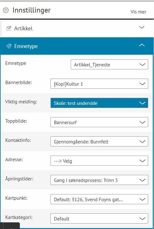 - Velg Emnetype under innstillinger på den aktuelle artikkelen