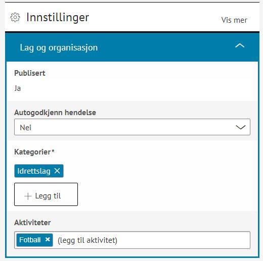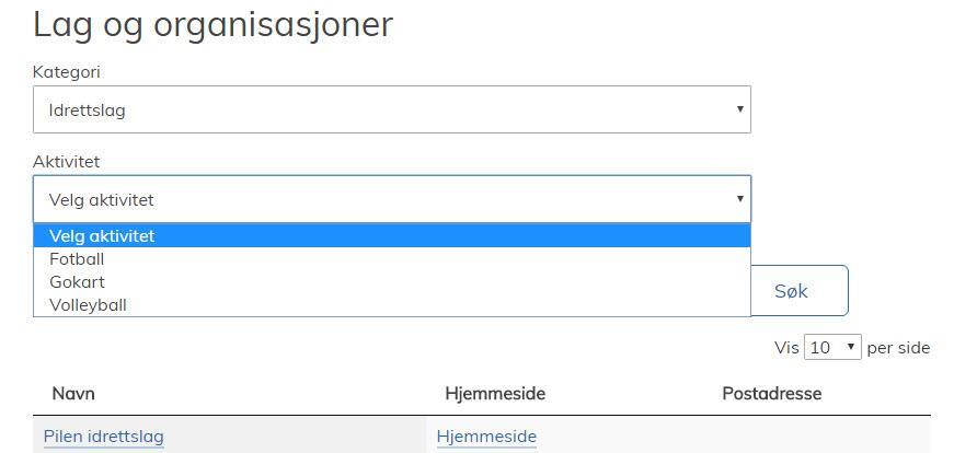 Aktiviteten du skriver inn her vil bli mulig å velge i feltet aktivitet under kategorien som laget er i på nettsiden.