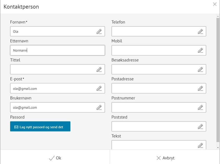 - I vinduet Kontaktperson finner du brukernavn (men ikke passord)