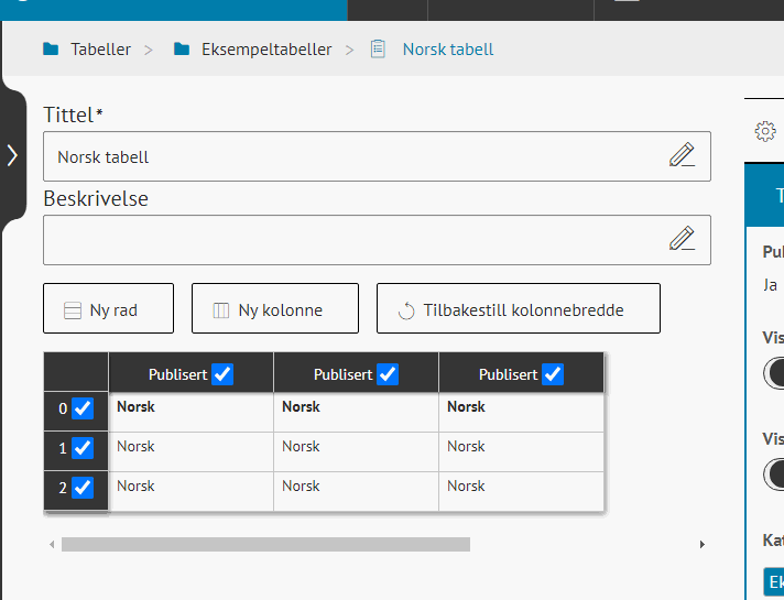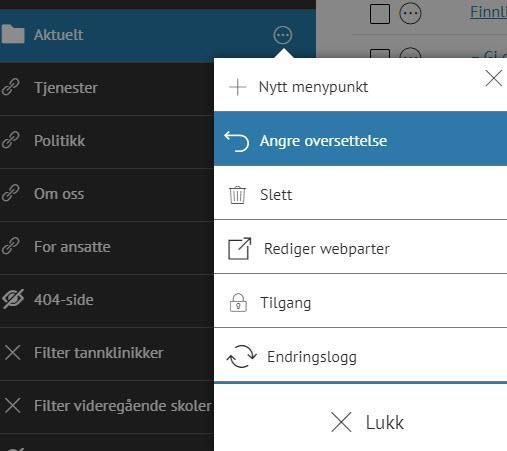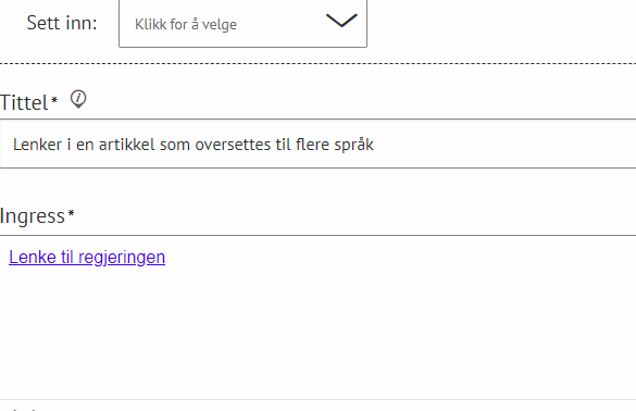 OversettelseI ACOS CMS er en innebygget funksjon for oversettelse. Oversettelse kan også løses ved å opprette egne nettsteder for språk. Under beskrives den innebygde oversettelsesfunksjonen. Publisert av Geir Hansen Publisert 23.06.2020 14.48 For å oversette til et annet språk så må nettstedet ha flere språk aktivert. Kontakt support så ordner vi dette. Oversette artikler, meny og modulerOfte stilte spørsmålLitt om funksjonen og begreperBegrensningerOversette artikkel,meny og moduler Hvordan oversetter jeg en artikkel?Øverst i menyen er en språkvelger som viser hvilket språkmodus du jobber i. I Meny, klikk på menypunkt der artikkelen er lagret/publisert Klikk på artikkelen du vil oversette Klikk på Språkvelgeren, velg språket du vil oversette artikkelen til Oversett teksten i artikkelen Klikk Lagre/Publiser Hvordan oversetter jeg et menypunktØverst i menyen er en språkvelger som viser hvilket språkmodus du jobber i Velg språkalternativ i språkvelger som du vil oversette til Klikk på flervalgsknapp (...) bak det aktuelle menypunktet Klikk på Endre tittel Skriv inn oversatt tittel Trykk Enter Slik oversetter du et menypunkt Hvordan oversetter jeg en tabell, fil eller andre moduler?Om en Tabell, FAQ el. er satt inn i versjonen på standardspråk første gang du oversetter, vil den vise på standardspråk på den oversatte versjonen også. Tabellen (modulen) må da oversettes: Klikk på Redigere (velg aktuell modul) > Tabell (brukt i eksempel under) Klikk på kategorien tabellen finnes i, klikk på den aktuelle tabellen Klikk på språk velger og velg Jeg vil angre/slette en oversettelse Når et menypunkt er lagret på et sekundærspråk vil det også vise på dette språket. Hva om du ønsker å ikke vise menypunktet på dette språket i etterkant? Da kan du tilbakestille eller angre oversettelsen: Velg det språket du vil fjerne oversettelsen for i språkvelger Klikk på flervalg bak menypunktet du vil slette oversettelse Lagre Jeg vil oversette bildetekst og alternativ tekst for et bilde Klikk på artikkelen der bildet er satt inn Klikk på Språkvelgeren, velg språket du vil oversette bilde -og alternativ tekst Dobbelklikk på bildet Oversette tekst i feltene Bildetekst og Alternativ tekst Klikk Ferdig Klikk Lagre/Publiser Hvordan lager jeg språkvelger på nettsiden?*Forutsetter at det er en webpart som har lenker i toppmeny el. Klikk på Rediger > Lenker Klikk på kategori som du vil opprette lenker til språk Klikk på Ny lenke Skriv inn tittel (navn på språk) Velg Intern lenke i feltet Lenketype Velg Endre Språk i feltet Hva vil du lenke til? Velg språket du vil lenken skal gå til i feltet Velg språk Publiser/Lagre Ofte stilte spørsmål Hva viser på nettsiden dersom innholdet ikke er oversatt?Innhold som ikke oversettes viser på standardspråk. F.eks. en artikkel som finnes på norsk (standardspråk) og som ikke oversettes/lagres på engelsk, vil vise på norsk når bruker velger engelsk i språkvelger på nettsideHvilken oversettelse skal jeg velge, innebygget eller eget nettsted?I ACOS CMS finnes 2 måter å tilby oversettelse av innholdet på nettsiden: innebygget oversettelse eller lag et eget nettsted for et språkVelg innebygget når:Du vil oversette hele nettstedetDu ikke trenger å gjøre endringer i menystruktur Du vet du har ressurser til å oversette og vedlikeholde hele nettstedet på flere språk Velg eget nettsted når:Du trenger å oversette deler av innholdet til et annet språkTrenger å endre menystruktur på den oversatte versjonen Er det mulig å ha ulike bilder, tabeller og moduler i de ulike oversettelsene? Ja det kan du. Du kan altså bytte ut bildet på sekundærversjonen av artikkelen og vise 2 ulike bilder på versjonene. Dette støttes også for de fleste andre modulene som er i listen i "sett inn"-meny i artikkelen. Slik fungerer oversettelse: Første gang du lagrer artikkelen på sekundærspråk vil alle moduler ( i tillegg til teksten) som bilder, tabeller (dersom du har satt inn dette i artikkelen) komme med. Om du oppdaterer (og lagrer) innholdet i artikkelen (setter inn en ny tabell, bilde el.) på standardspråket etter denne første lagringen vil ikke dette vise på sekundærspråket. Da "lever de på en måte hver sitt liv" og du må sette inn disse modulene på sekundærspråket også. Når du har flere moduler som FAQ, tabell, webskjema mm. i artikkelen må disse også oversettes: Gå til den aktuelle modul f.eks en tabell. Velg språk i språkvelger > oversett innholdet og lagre Vil et menypunkt vise på flere språk hvis det ikke er lagret på det aktuelle språket?Nei det vil det ikke. Det vil kun vise på de språkene det lagres for, i Tillegg til standardspråk Hvordan ser jeg hvilket språk som er standardspråk for nettstedet? Klikk på Nettstedsvelger øverst til venstre > klikk på Innstillinger Under Nettsted viser angitt språk under Språk :) I søkeresultatet viser treff på standardspråk når jeg søker på sekundærspråkDet interne nettstedsøket tar ikke hensyn til språk men viser treff som er relatert til det som søkes etter. Jeg ønsker at en lenke skal ha ulike destinasjoner på de ulike oversettelsene Når du oversetter en artikkel som inneholder lenker for første gang vil lenkens ID være den samme i begge/alle versjoner. Endrer du lenken(e) i en av versjonene vil den endres til den samme i de/den andre versjonene. Dette gjelder også lenker til filer. For å få ulike destinasjoner på lenkene må du gjøre følgende: Etter at artikkelen er oversatt første gang, velg det aktuelle språket i språkvelger Høyreklikk på lenken i artikkelen Velg fjern lenke Klikk Lagre Markere teksten en gang til Høyreklikk, velg Sett inn lenke Velg lenketype og destinasjon Klikk Lagre Jeg finner ikke knappen for å laste opp bilder eller filer?Bilder og filer kan kun lastes opp når standardspråk er aktivt i ACOS CMS. Bytt språk til standardspråk så vil du se knapper for å laste opp filer og b