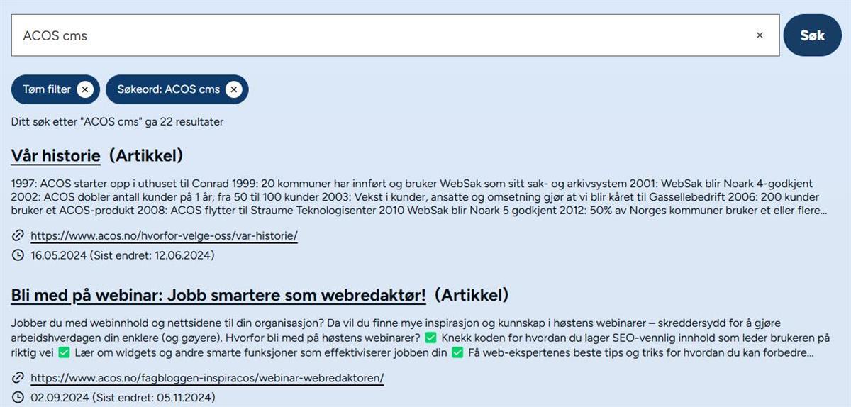 Har du noen gang opplevd at noe du har laget ikke dukker opp i søkeresultatet? Kanskje noen menypunkter ikke dukker opp i søket ditt, for eksempel "Transportside"-menypunktene dine?