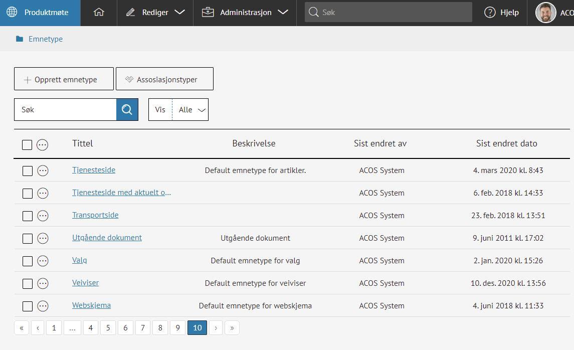 - Gå til Administrasjon > Emnetyper