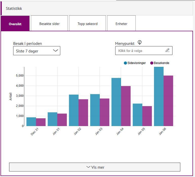 - Detaljert oversikt over antall besøk bak knappen Vis mer