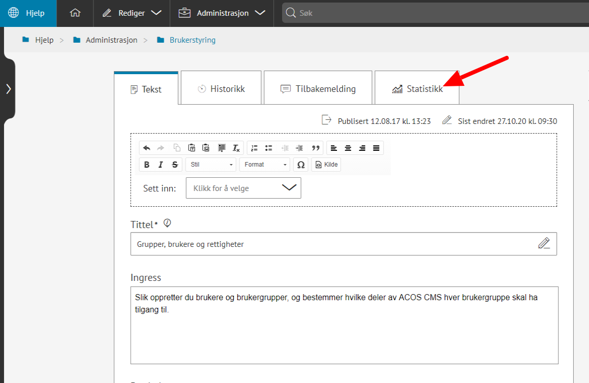 - Valg for å velge å se statistikk for et bestemt menypunkt