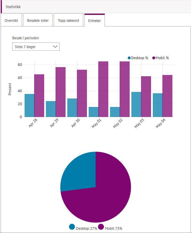 - Oversikt over antall besøk utført med mobil eller desktop