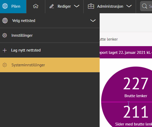 Om det er mange nettsteder som administreres i samme løsning så kan du sortere nettstedene i kategorier slik at listen ikke blir lang og uoversiktlig.
