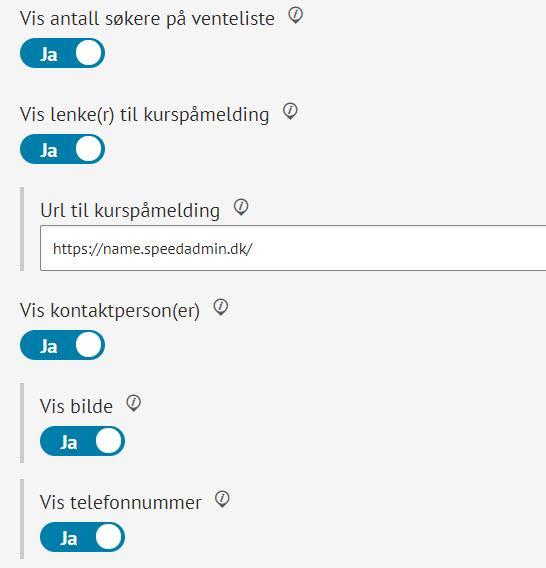 Velg hva du vil vise på sidene for kurs fra Speedadmin