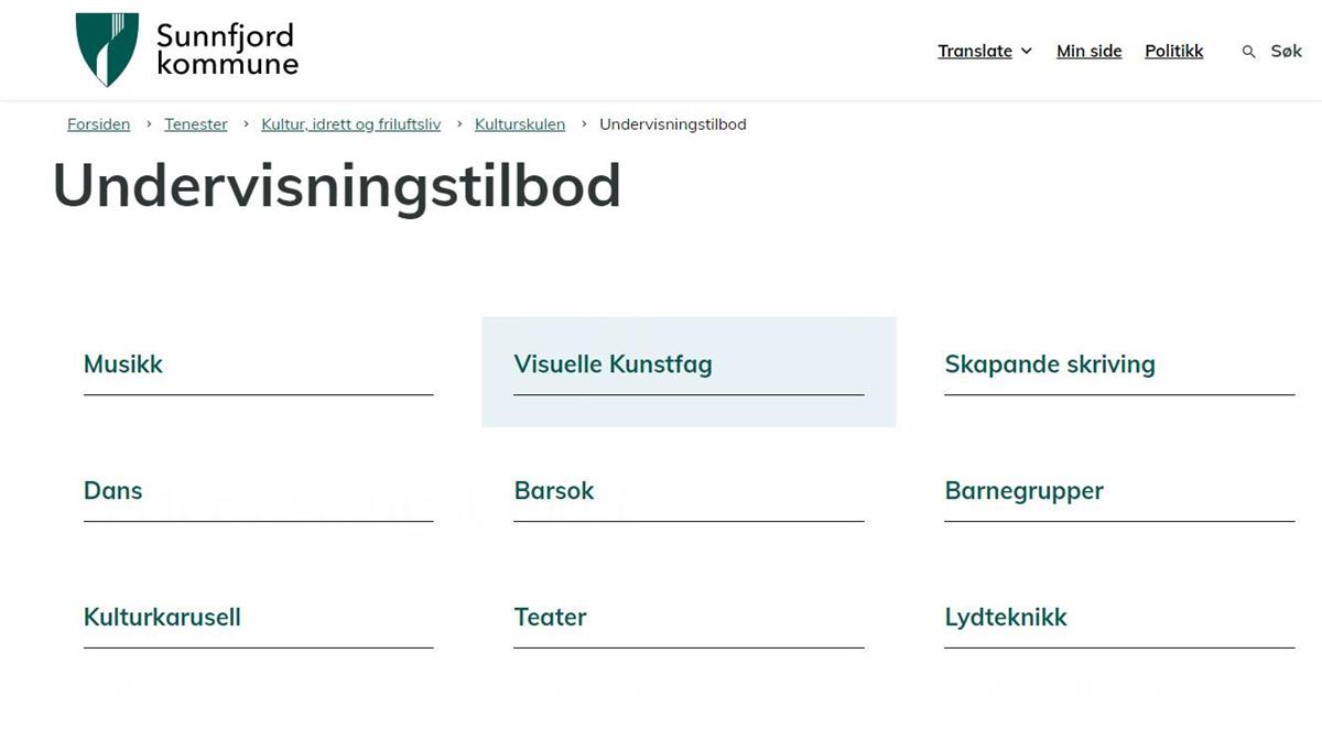 - I meny, klikk på menypunktet Kulturskole (el.) for å få frem innstillingene til forsiden