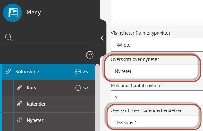 Hvordan kan jeg redigere overskriftene på forsiden: Nyheter og Kalender?