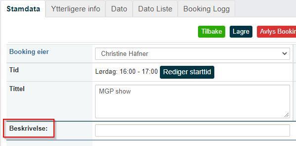 Kalenderhendelser som viser fra Speedadmin (kalt "Bookings" i Speedadmin) har ofte en beskrivelse. For å få denne med i kalenderhendelse på nettsiden må det legges inn en referanse.