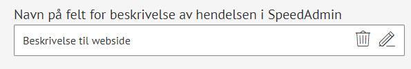 - Nederst, skriv inn navnet for feltet (f.eks Beskrivelse) i feltet Navn på felt for beskrivelse av hendelsen i Speedadmin