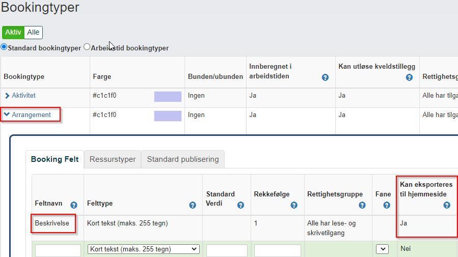 - Sørg for at feltet Kan eksporteres til hjemmeside er Ja