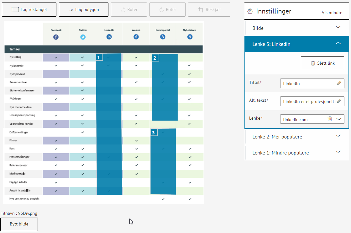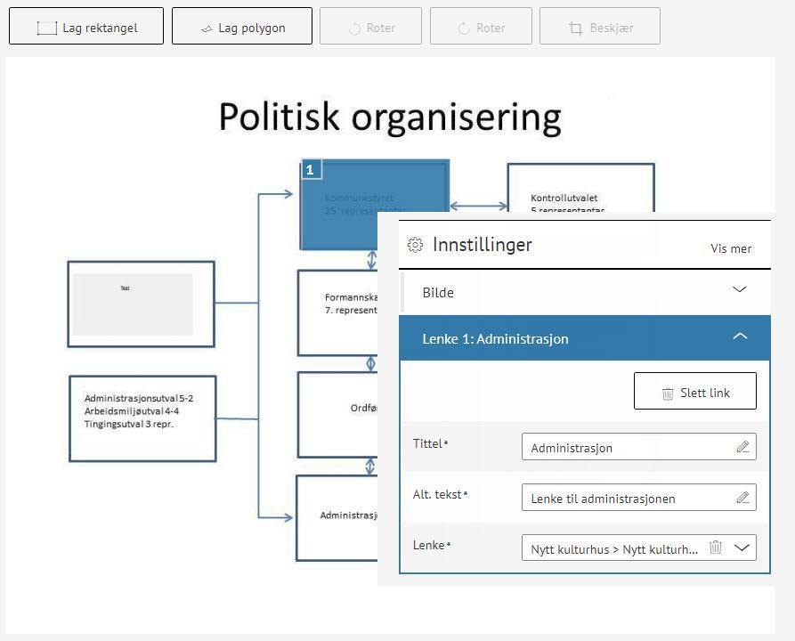 - Du kan nå sette inn flere lenker med rektangel/polygon-knappene