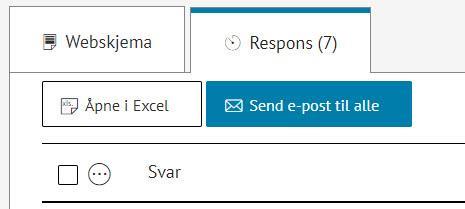 Når du har fått et innsendt skjema vil det dukke opp en fane som heter Respons. Klikk på denne for å se en oversikt over hva avsenderne har svart.