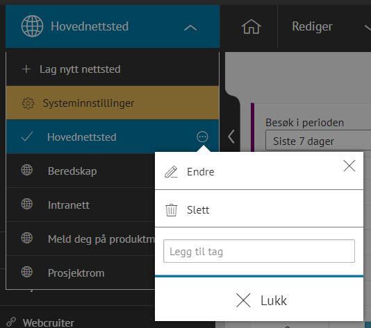 Velg Endre bak nettstedet du vil legge inn en beredskapsportal
