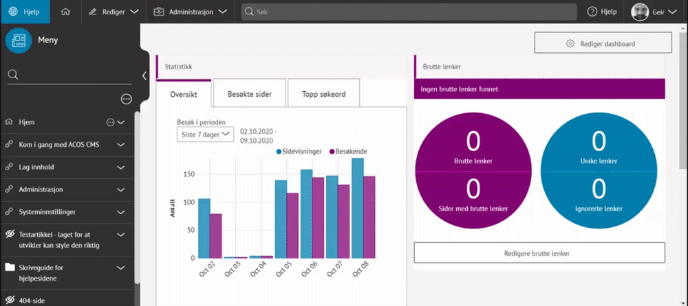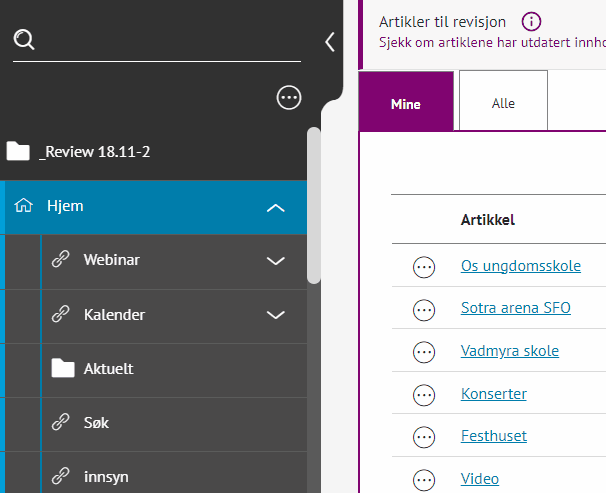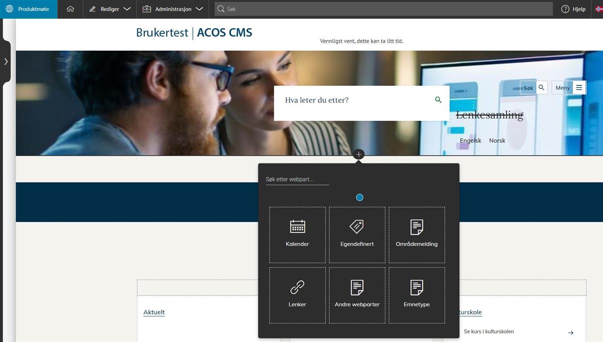 - I Meny, klikk på flervalg (…) bak menypunktet "Forside/Hjem" og velg Redigere webparter