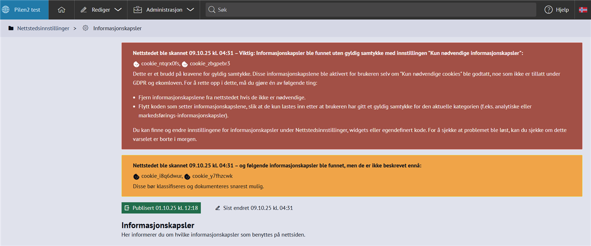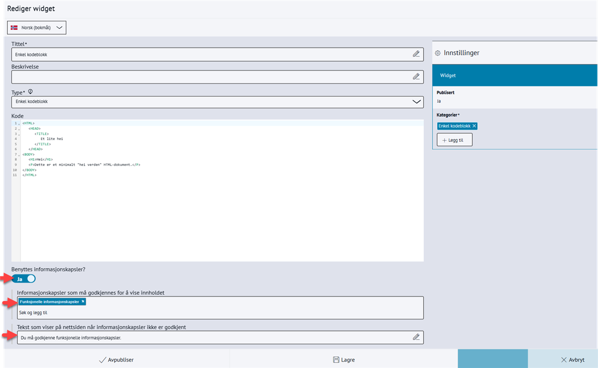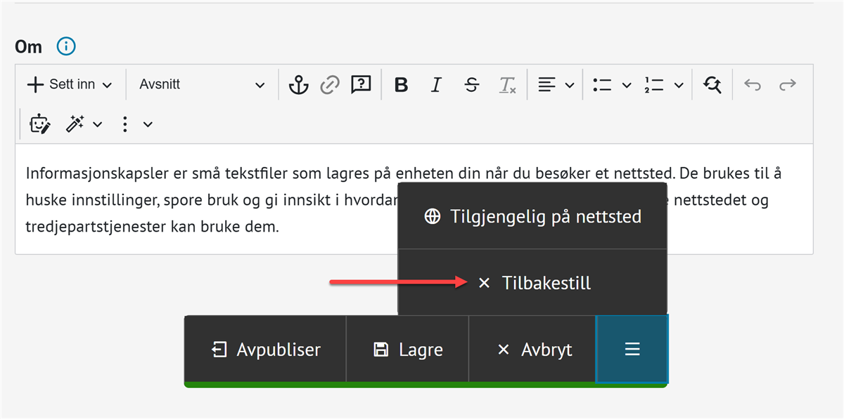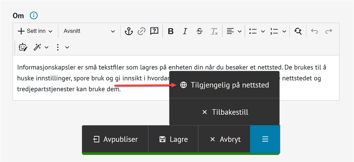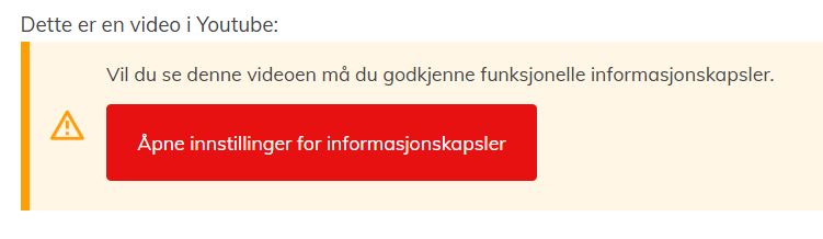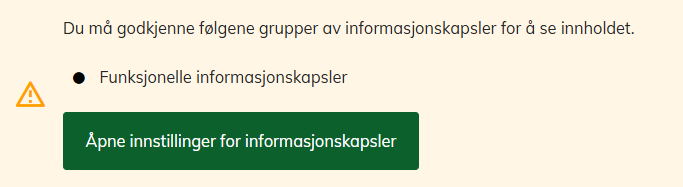[Sett inn widget av typen informasjonskapsel varsel, se forklaring i FAQ-spørsmål “Legg inn mulighet til å endre samtykke i artikkel om informasjonskapsler og personvern”]