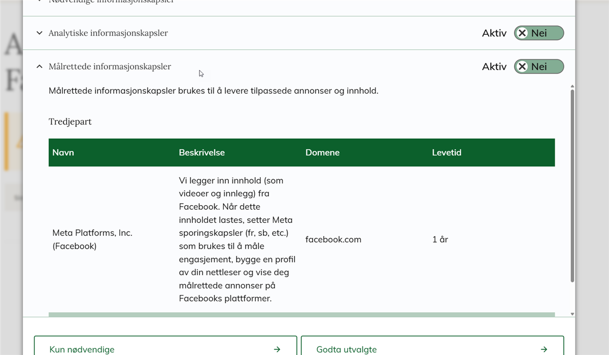 - Analytiske informasjonskapsler: Vi bruker disse for å samle inn informasjon om hvordan besøkende bruker våre nettsider, slik at vi kan forbedre brukervennligheten og funksjonaliteten.